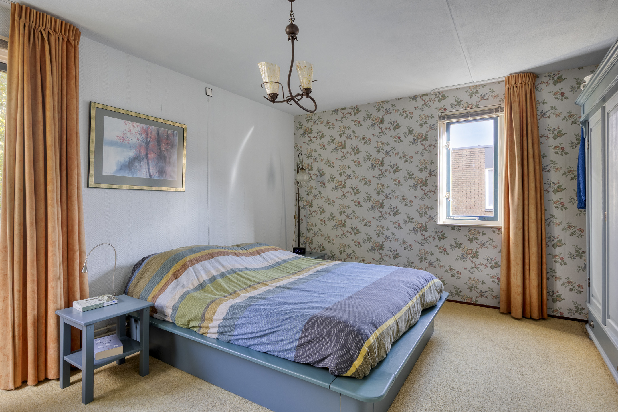 Met 4 slaapkamers is de bovenverdieping heerlijk ruim. De grootste slaapkamer strekt zich uit over de hele voorkant van het huis – de ramen rondom zorgen hier voor een lichte, open en aangename sfeer. De 2 gezellige slaapkamers aan de achterzijde zijn perfect als kinderkamer of logeerkamer, maar bieden ook volop mogelijkheden als bijvoorbeeld studeerkamer of kleedkamer. Boven de garage ligt de royale 4e slaapkamer met karaktervolle schuine kap – een sfeervolle ruimte voor een master bedroom, hobbykamer of thuiswerkplek. De badkamer is ruim en licht, met een royale inloopdouche voorzien van glazen wand, een breed wastafelmeubel in lichte houttinten en een designradiator voor warme, droge handdoeken. Het openslaande raam en de mechanische ventilatie zorgen voor frisse lucht en een prettig binnenklimaat. Op de overloop vind je bovendien een apart toilet en extra bergruimte.