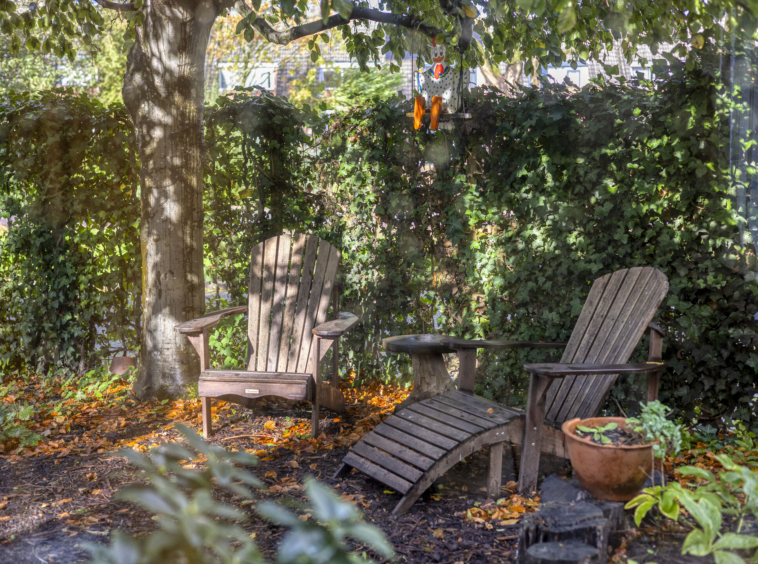 Rondom het huis ligt een volwassen, groene tuin die privacy en rust biedt. Met een zonnig terras, een overkapping, gazon en genoeg ruimte voor speeltoestellen of de barbecue. Dankzij de ligging op het zuidwesten zit je hier heerlijk in de zon, terwijl de natuurlijke beplanting zorgt voor beschutting.